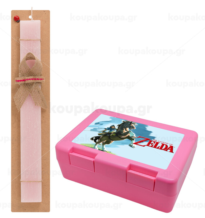 Zelda, Πασχαλινή Λαμπάδα με παιδικό δοχείο κολατσιού ΡΟΖ & κερί αρωματικό πλακέ (30cm) (ΡΟΖ)