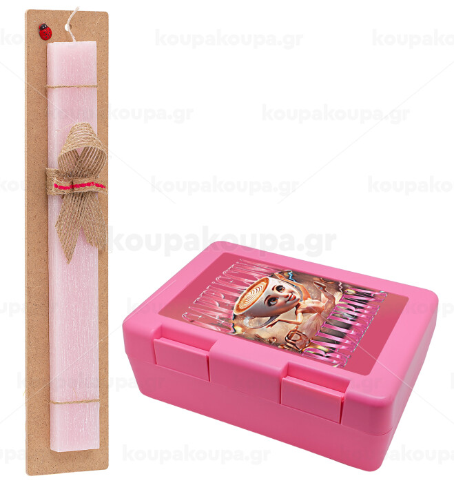 BALLERINA CAPUCHINA FUNK, Πασχαλινή Λαμπάδα με παιδικό δοχείο κολατσιού ΡΟΖ & κερί αρωματικό πλακέ (30cm) (ΡΟΖ)