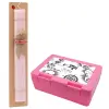 To travel is to live, Πασχαλινή Λαμπάδα με παιδικό δοχείο κολατσιού ΡΟΖ & κερί αρωματικό πλακέ (30cm) (ΡΟΖ)