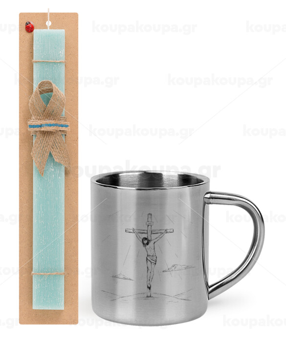 Jesus Christ , Πασχαλινή Λαμπάδα με μεταλλική κούπα θερμό (300ml) & κερί αρωματικό πλακέ (30cm) (ΤΙΡΚΟΥΑΖ)