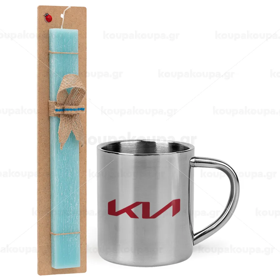 KIA, Πασχαλινή Λαμπάδα με μεταλλική κούπα θερμό (300ml) & κερί αρωματικό πλακέ (30cm) (ΤΙΡΚΟΥΑΖ)