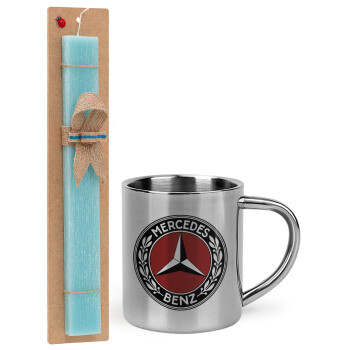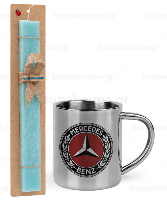 Mercedes vintage, Πασχαλινή Λαμπάδα με μεταλλική κούπα θερμό (300ml) & κερί αρωματικό πλακέ (30cm) (ΤΙΡΚΟΥΑΖ)