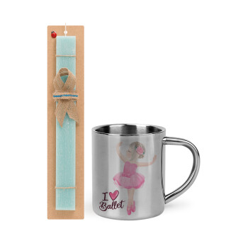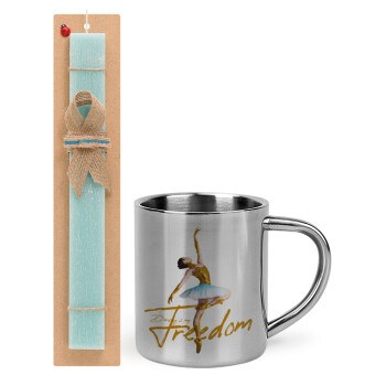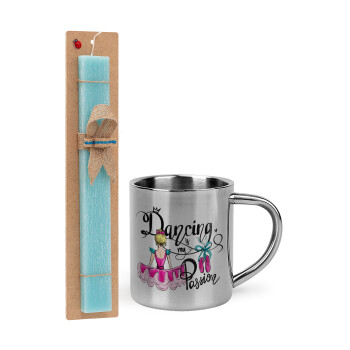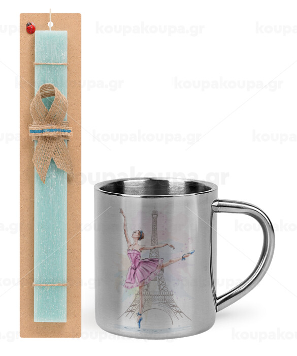 Ballerina in Paris, Πασχαλινή Λαμπάδα με μεταλλική κούπα θερμό (300ml) & κερί αρωματικό πλακέ (30cm) (ΤΙΡΚΟΥΑΖ)