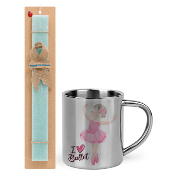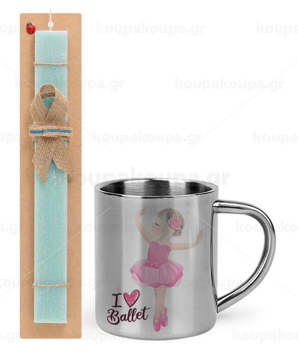 I Love Ballet, Πασχαλινή Λαμπάδα με μεταλλική κούπα θερμό (300ml) & κερί αρωματικό πλακέ (30cm) (ΤΙΡΚΟΥΑΖ)