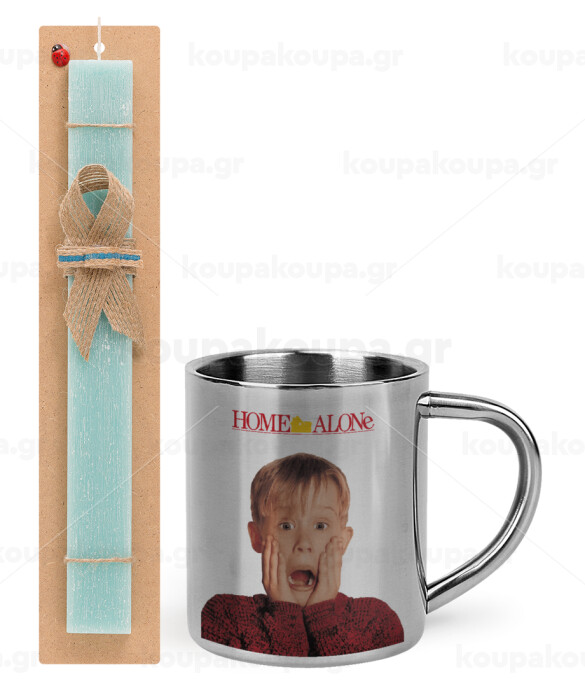 Μόνος στο σπίτι Kevin McCallister Shocked, Πασχαλινή Λαμπάδα με μεταλλική κούπα θερμό (300ml) & κερί αρωματικό πλακέ (30cm) (ΤΙΡΚΟΥΑΖ)