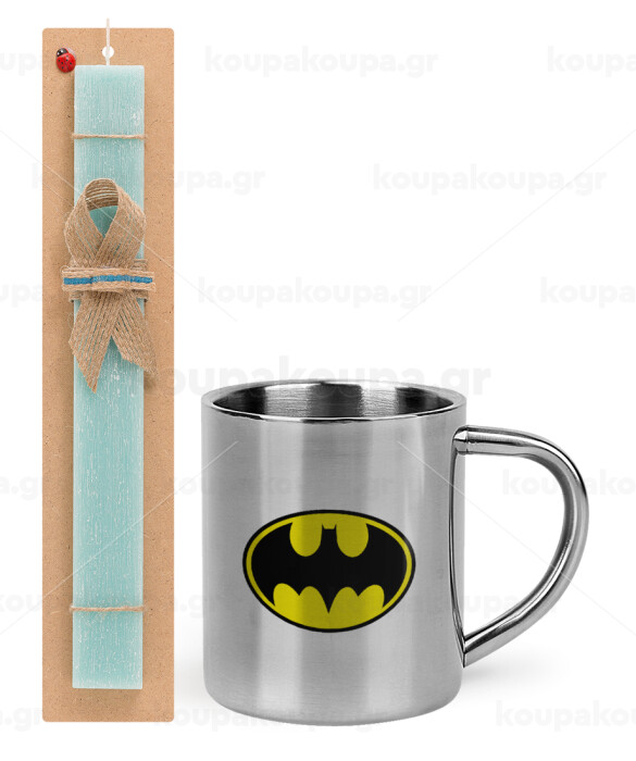 Batman, Πασχαλινή Λαμπάδα με μεταλλική κούπα θερμό (300ml) & κερί αρωματικό πλακέ (30cm) (ΤΙΡΚΟΥΑΖ)