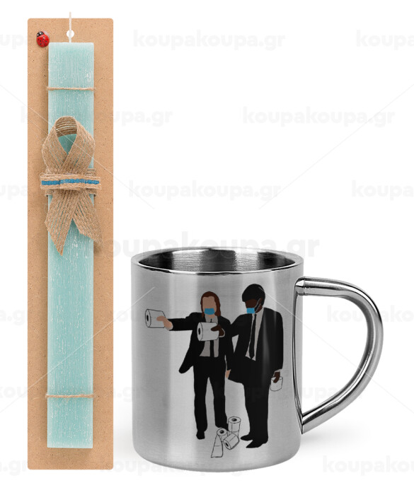 Pulp Fiction 3 meter away, Πασχαλινή Λαμπάδα με μεταλλική κούπα θερμό (300ml) & κερί αρωματικό πλακέ (30cm) (ΤΙΡΚΟΥΑΖ)