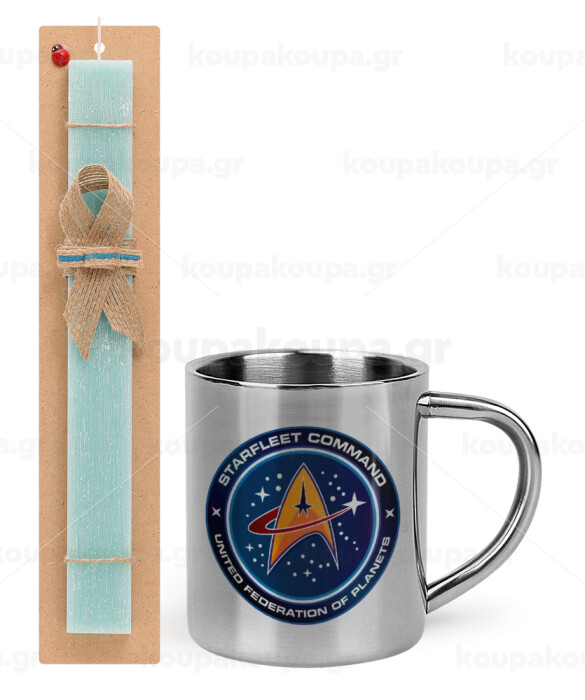 Starfleet command, Πασχαλινή Λαμπάδα με μεταλλική κούπα θερμό (300ml) & κερί αρωματικό πλακέ (30cm) (ΤΙΡΚΟΥΑΖ)