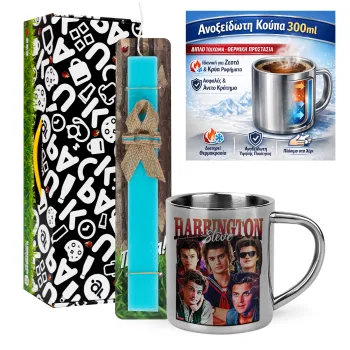 Steve Harrington, Stranger Things, Πασχαλινή Λαμπάδα με μεταλλική κούπα θερμό (300ml) & κερί αρωματικό πλακέ (30cm) (ΤΙΡΚΟΥΑΖ)