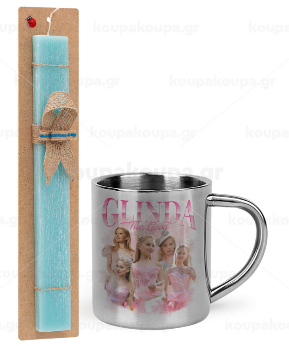 Wicked Glinda, Πασχαλινή Λαμπάδα με μεταλλική κούπα θερμό (300ml) & κερί αρωματικό πλακέ (30cm) (ΤΙΡΚΟΥΑΖ)