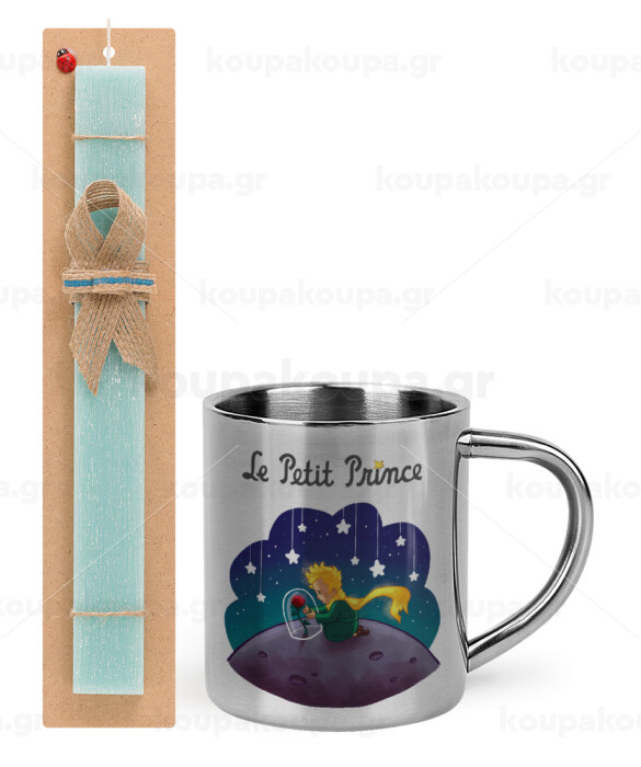 Ο μικρός πρίγκιπας, Πασχαλινή Λαμπάδα με μεταλλική κούπα θερμό (300ml) & κερί αρωματικό πλακέ (30cm) (ΤΙΡΚΟΥΑΖ)