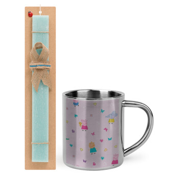 Πέππα το γουρουνάκι και οι φίλοι της, Πασχαλινή Λαμπάδα με μεταλλική κούπα θερμό (300ml) & κερί αρωματικό πλακέ (30cm) (ΤΙΡΚΟΥΑΖ)