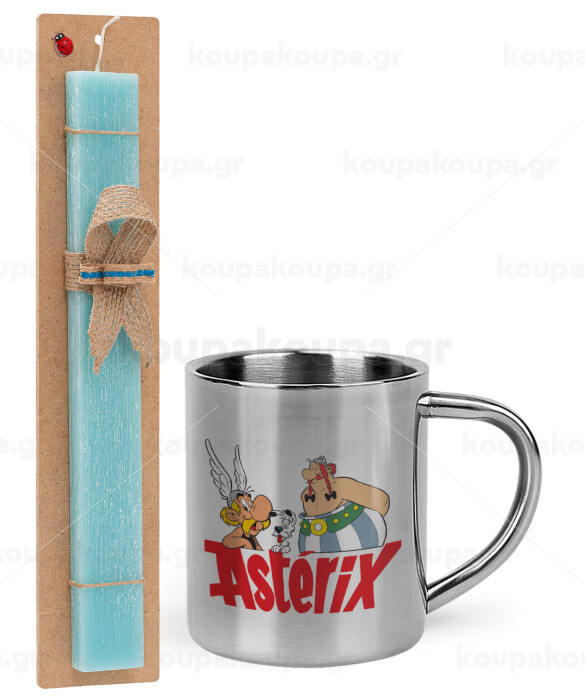 Asterix and Obelix, Πασχαλινή Λαμπάδα με μεταλλική κούπα θερμό (300ml) & κερί αρωματικό πλακέ (30cm) (ΤΙΡΚΟΥΑΖ)