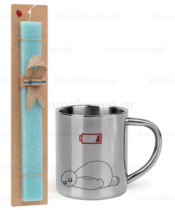 Baymax battery low, Πασχαλινή Λαμπάδα με μεταλλική κούπα θερμό (300ml) & κερί αρωματικό πλακέ (30cm) (ΤΙΡΚΟΥΑΖ)