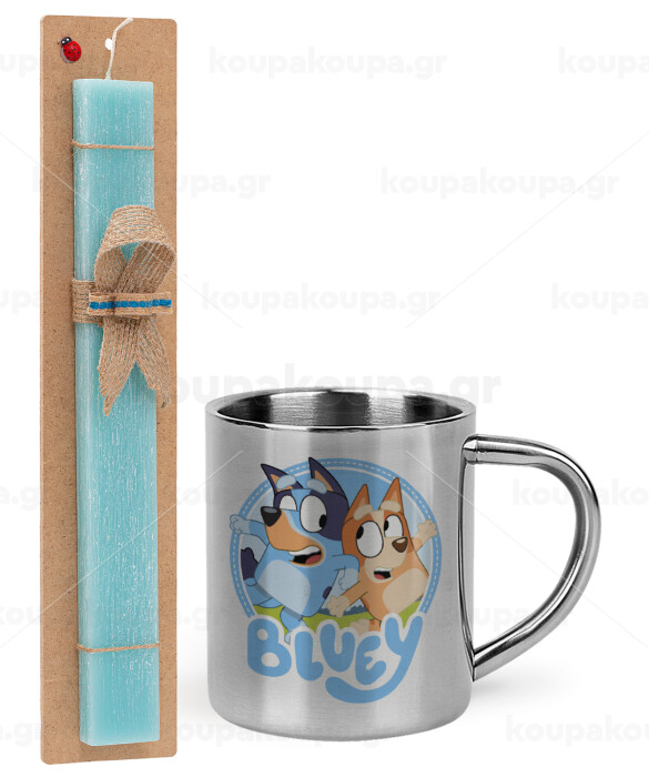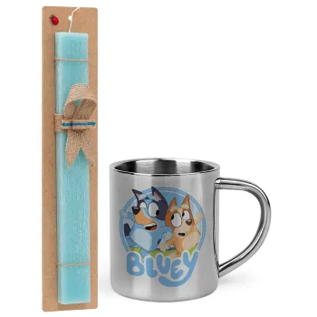 Μπλε, Πασχαλινή Λαμπάδα με μεταλλική κούπα θερμό (300ml) & κερί αρωματικό πλακέ (30cm) (ΤΙΡΚΟΥΑΖ)