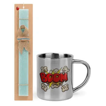 BOOM!!!, Πασχαλινή Λαμπάδα με μεταλλική κούπα θερμό (300ml) & κερί αρωματικό πλακέ (30cm) (ΤΙΡΚΟΥΑΖ)