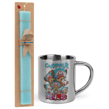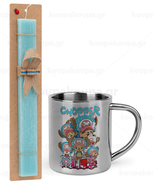 Chopper One Piece, Πασχαλινή Λαμπάδα με μεταλλική κούπα θερμό (300ml) & κερί αρωματικό πλακέ (30cm) (ΤΙΡΚΟΥΑΖ)