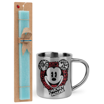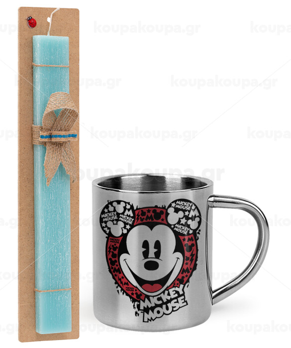 Mickey Mouse, Πασχαλινή Λαμπάδα με μεταλλική κούπα θερμό (300ml) & κερί αρωματικό πλακέ (30cm) (ΤΙΡΚΟΥΑΖ)