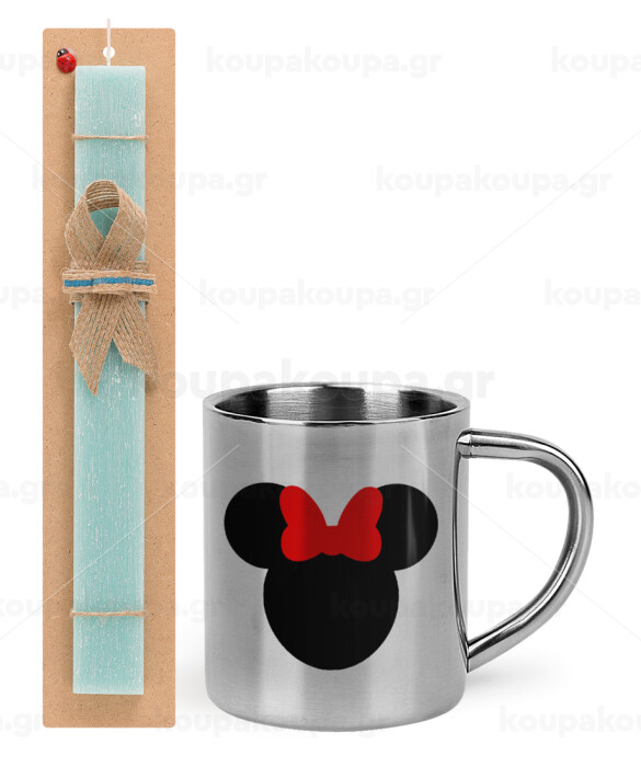 Minnie head, Πασχαλινή Λαμπάδα με μεταλλική κούπα θερμό (300ml) & κερί αρωματικό πλακέ (30cm) (ΤΙΡΚΟΥΑΖ)