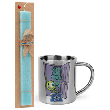 Monster inc, Πασχαλινή Λαμπάδα με μεταλλική κούπα θερμό (300ml) & κερί αρωματικό πλακέ (30cm) (ΤΙΡΚΟΥΑΖ)