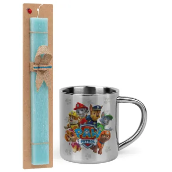PAW patrol, τα κουτάβια, Πασχαλινή Λαμπάδα με μεταλλική κούπα θερμό (300ml) & κερί αρωματικό πλακέ (30cm) (ΤΙΡΚΟΥΑΖ)