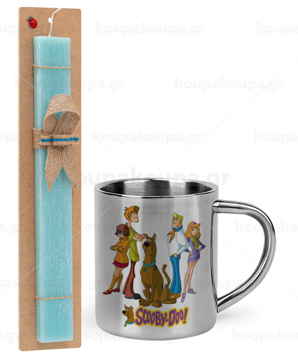 Scooby Doo Characters, Πασχαλινή Λαμπάδα με μεταλλική κούπα θερμό (300ml) & κερί αρωματικό πλακέ (30cm) (ΤΙΡΚΟΥΑΖ)