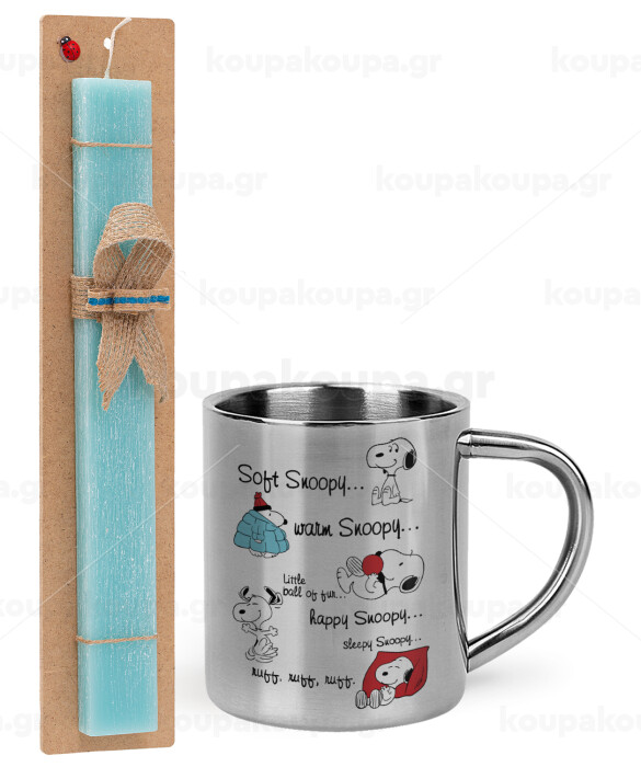 Snoopy manual, Πασχαλινή Λαμπάδα με μεταλλική κούπα θερμό (300ml) & κερί αρωματικό πλακέ (30cm) (ΤΙΡΚΟΥΑΖ)