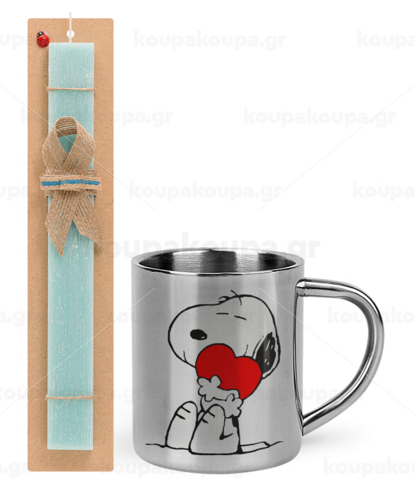 Snoopy, Πασχαλινή Λαμπάδα με μεταλλική κούπα θερμό (300ml) & κερί αρωματικό πλακέ (30cm) (ΤΙΡΚΟΥΑΖ)