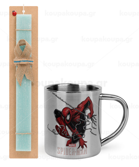 Spider-man, Πασχαλινή Λαμπάδα με μεταλλική κούπα θερμό (300ml) & κερί αρωματικό πλακέ (30cm) (ΤΙΡΚΟΥΑΖ)