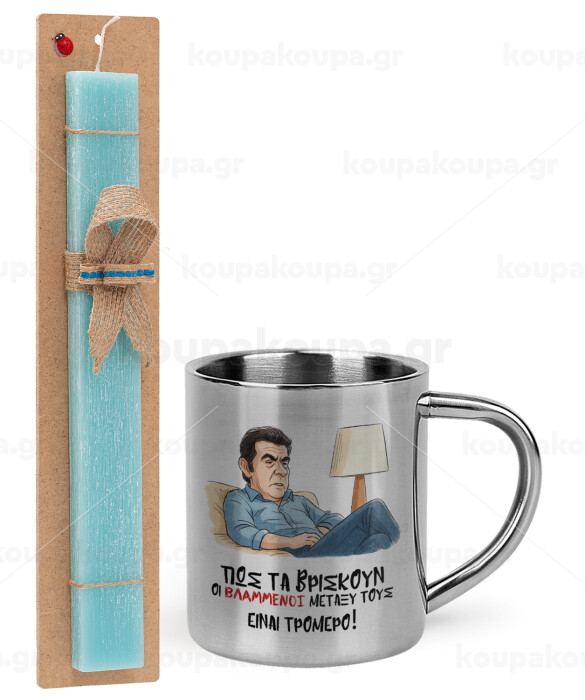 ΠΩΣ ΤΑ ΒΡΙΣΚΟΥΝ ΟΙ ΒΛΑ....ΝΟΙ ΜΕΤΑΞΥ ΤΟΥΣ, ΕΙΝΑΙ ΤΡΟΜΕΡΟ!!!, Πασχαλινή Λαμπάδα με μεταλλική κούπα θερμό (300ml) & κερί αρωματικό πλακέ (30cm) (ΤΙΡΚΟΥΑΖ)