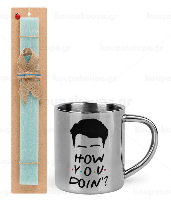 Friends how you doin?, Πασχαλινή Λαμπάδα με μεταλλική κούπα θερμό (300ml) & κερί αρωματικό πλακέ (30cm) (ΤΙΡΚΟΥΑΖ)
