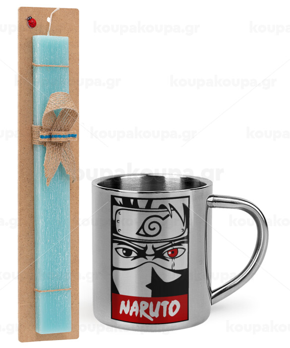 Naruto anime, Πασχαλινή Λαμπάδα με μεταλλική κούπα θερμό (300ml) & κερί αρωματικό πλακέ (30cm) (ΤΙΡΚΟΥΑΖ)