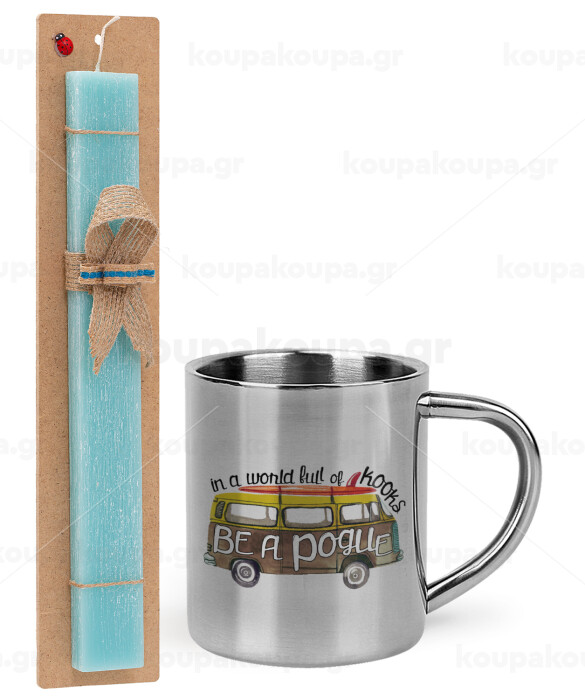 Outerbanks Pogue Life, Πασχαλινή Λαμπάδα με μεταλλική κούπα θερμό (300ml) & κερί αρωματικό πλακέ (30cm) (ΤΙΡΚΟΥΑΖ)