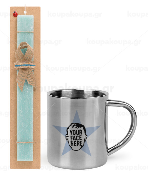 The office star CUSTOM, Πασχαλινή Λαμπάδα με μεταλλική κούπα θερμό (300ml) & κερί αρωματικό πλακέ (30cm) (ΤΙΡΚΟΥΑΖ)