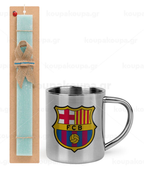 Barcelona FC, Πασχαλινή Λαμπάδα με μεταλλική κούπα θερμό (300ml) & κερί αρωματικό πλακέ (30cm) (ΤΙΡΚΟΥΑΖ)