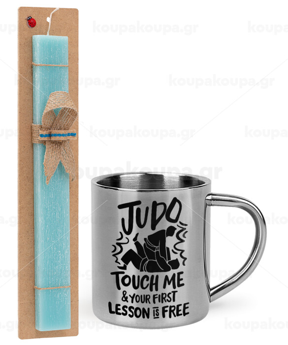 Judo Touch Me And Your First Lesson Is Free, Πασχαλινή Λαμπάδα με μεταλλική κούπα θερμό (300ml) & κερί αρωματικό πλακέ (30cm) (ΤΙΡΚΟΥΑΖ)