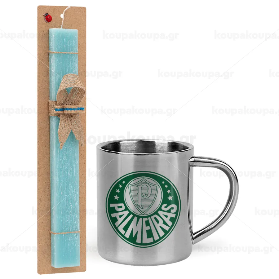 Palmeiras, Πασχαλινή Λαμπάδα με μεταλλική κούπα θερμό (300ml) & κερί αρωματικό πλακέ (30cm) (ΤΙΡΚΟΥΑΖ)
