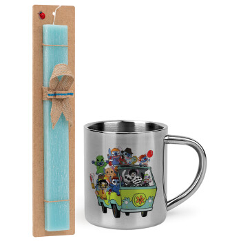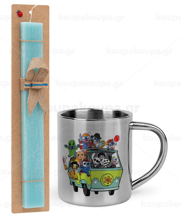Stitch Halloween scooby car, Πασχαλινή Λαμπάδα με μεταλλική κούπα θερμό (300ml) & κερί αρωματικό πλακέ (30cm) (ΤΙΡΚΟΥΑΖ)