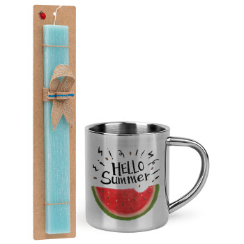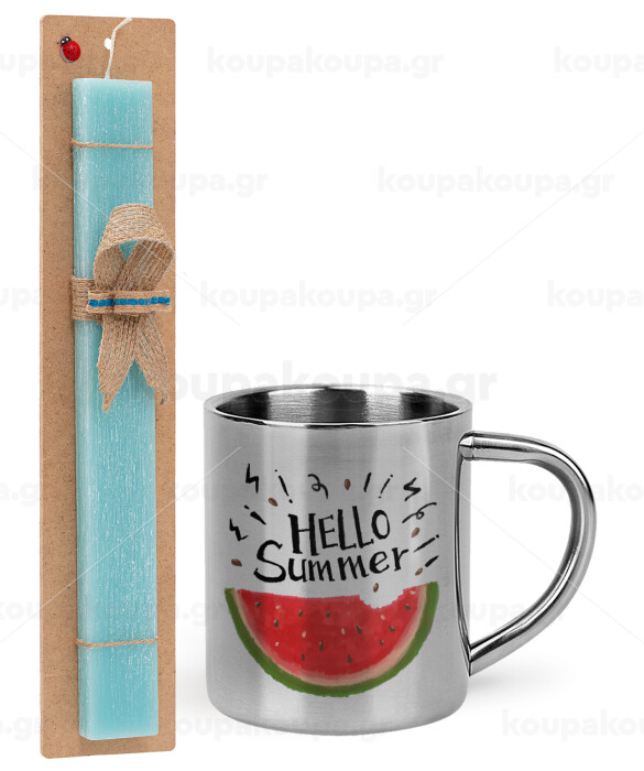 Summer Watermelon, Πασχαλινή Λαμπάδα με μεταλλική κούπα θερμό (300ml) & κερί αρωματικό πλακέ (30cm) (ΤΙΡΚΟΥΑΖ)