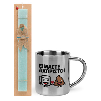 Είμαστε αχώριστοι, Πασχαλινή Λαμπάδα με μεταλλική κούπα θερμό (300ml) & κερί αρωματικό πλακέ (30cm) (ΤΙΡΚΟΥΑΖ)