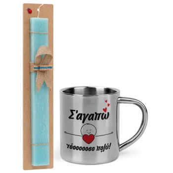 Σ΄αγαπώ τόοοοσο πολύ (Κορίτσι)!!!, Πασχαλινή Λαμπάδα με μεταλλική κούπα θερμό (300ml) & κερί αρωματικό πλακέ (30cm) (ΤΙΡΚΟΥΑΖ)