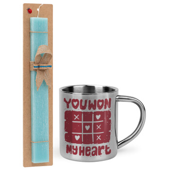 Τρίλιζα you won my heart, Πασχαλινή Λαμπάδα με μεταλλική κούπα θερμό (300ml) & κερί αρωματικό πλακέ (30cm) (ΤΙΡΚΟΥΑΖ)