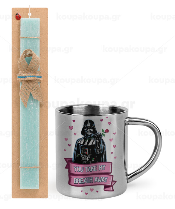Darth Vader, you take my breath away, Πασχαλινή Λαμπάδα με μεταλλική κούπα θερμό (300ml) & κερί αρωματικό πλακέ (30cm) (ΤΙΡΚΟΥΑΖ)