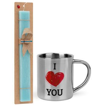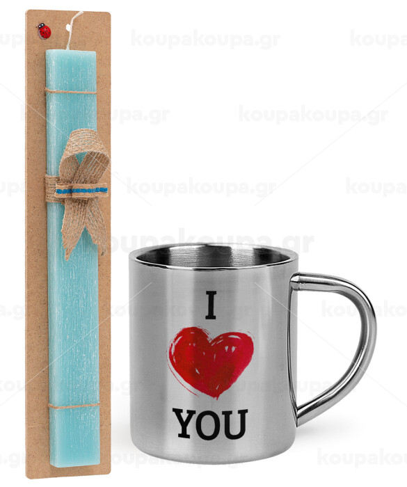 I Love You, Πασχαλινή Λαμπάδα με μεταλλική κούπα θερμό (300ml) & κερί αρωματικό πλακέ (30cm) (ΤΙΡΚΟΥΑΖ)