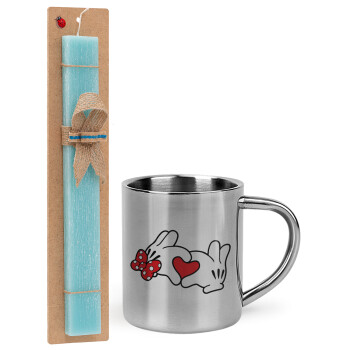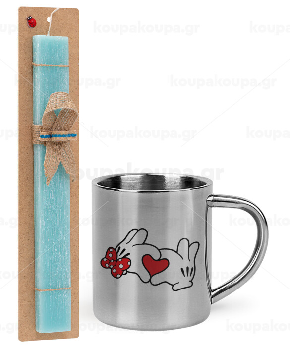 Love hands, Πασχαλινή Λαμπάδα με μεταλλική κούπα θερμό (300ml) & κερί αρωματικό πλακέ (30cm) (ΤΙΡΚΟΥΑΖ)