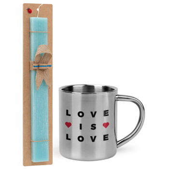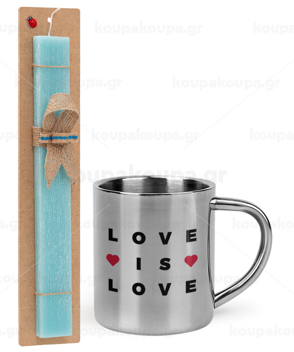 Love is Love, Πασχαλινή Λαμπάδα με μεταλλική κούπα θερμό (300ml) & κερί αρωματικό πλακέ (30cm) (ΤΙΡΚΟΥΑΖ)