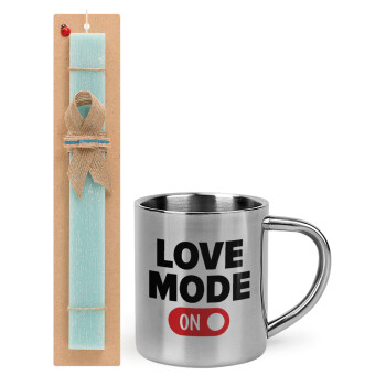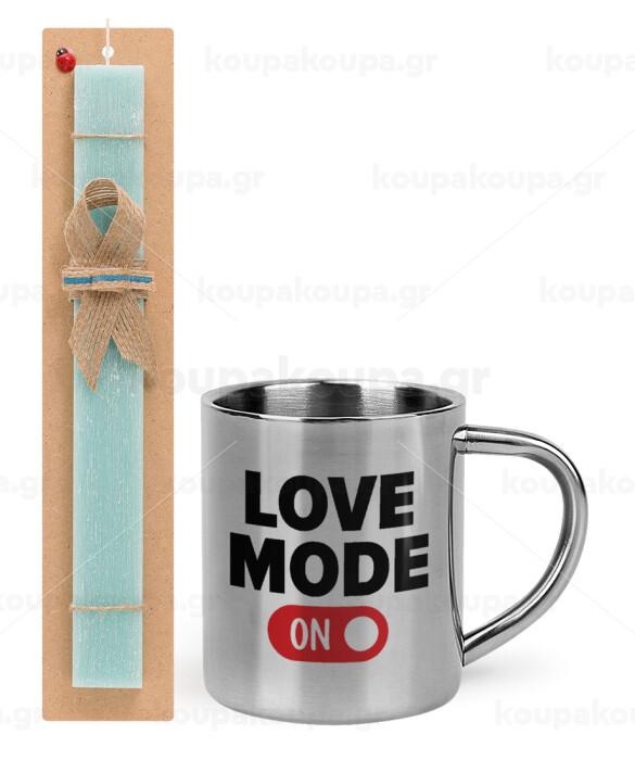 LOVE MODE ON, Πασχαλινή Λαμπάδα με μεταλλική κούπα θερμό (300ml) & κερί αρωματικό πλακέ (30cm) (ΤΙΡΚΟΥΑΖ)
