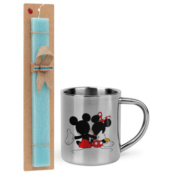 mickey and minnie hags, Πασχαλινή Λαμπάδα με μεταλλική κούπα θερμό (300ml) & κερί αρωματικό πλακέ (30cm) (ΤΙΡΚΟΥΑΖ)
