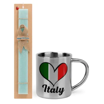 Italy flag, Πασχαλινή Λαμπάδα με μεταλλική κούπα θερμό (300ml) & κερί αρωματικό πλακέ (30cm) (ΤΙΡΚΟΥΑΖ)