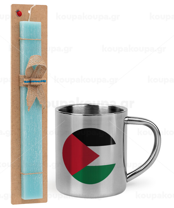 Σημαία Παλαιστίνης, Πασχαλινή Λαμπάδα με μεταλλική κούπα θερμό (300ml) & κερί αρωματικό πλακέ (30cm) (ΤΙΡΚΟΥΑΖ)